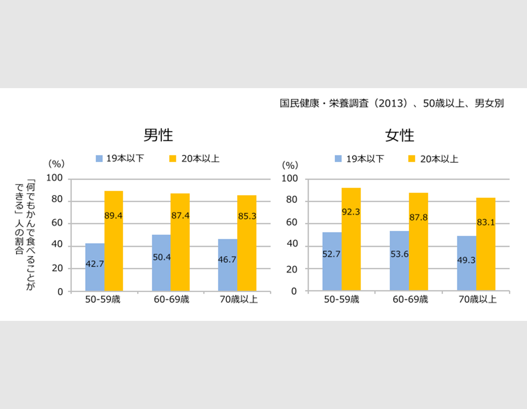 個人差はありますが、高齢になるとむし歯や歯周病、その他病気・事故などにより歯を失う方が多くいらっしゃいます。実際に80代で20本以上の歯を残せている方は、およそ半分程度です。